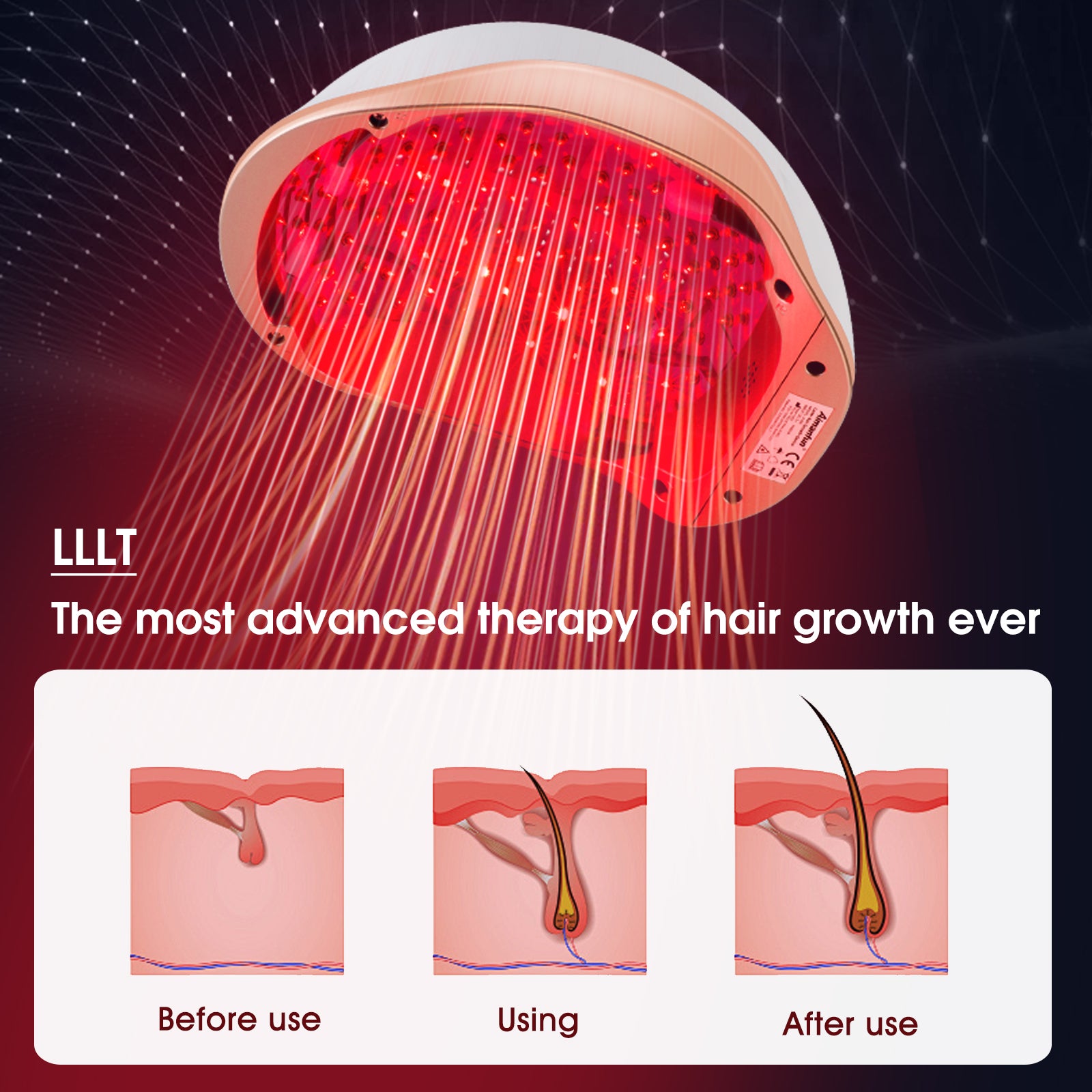 The light source of the laser hair generator is visible red light, the use of laser diode to produce 650nm wavelength, with strong penetration and radiation force, can provide the energy required for hair follicle cell regeneration, through low energy laser penetration into the deep layer of scalp cells (hair roots and hair balls), the use of energy laser to stimulate the biological, regulate the expression of 5α reductase gene and vascular endothelial growth factor gene; Accelerate hair follicle cell division, promote hair growth, increase the vitality of hair follicles, expand blood vessels, promote blood circulation in the nutrient supply center of hair follicles, regulate endocrine, and thus promote hair growth in patients with hair loss