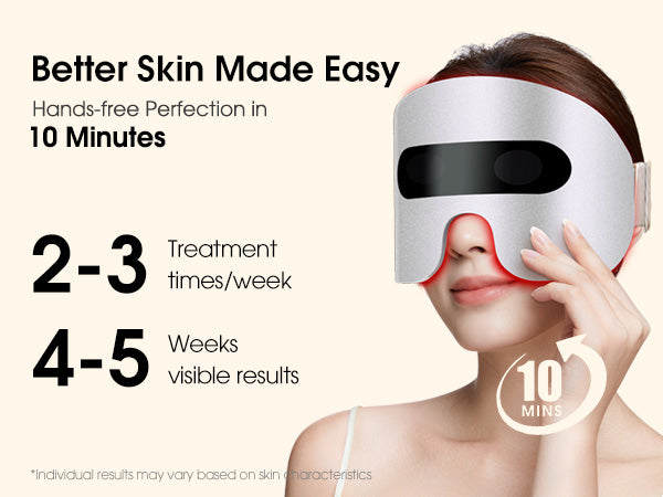 Intelligent and Widely Applicable - ergonomic design, perfect fit for head contour, suitable for all heads, adjustable hair band length. The instrument uses three different intensities of light to alternately irradiate the skin and effectively improve eye wrinkles.